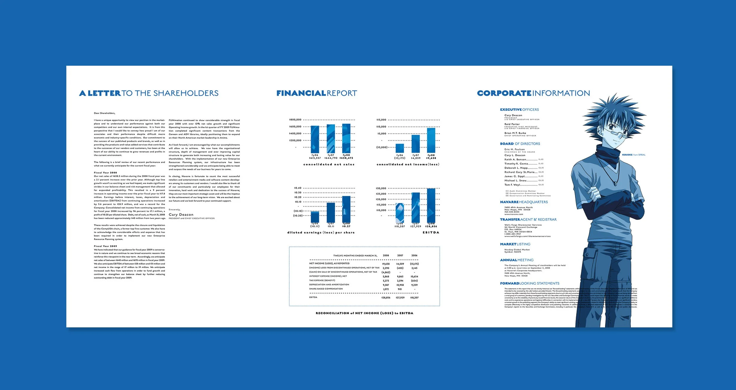 As Funimation went public, I designed two contrasting investor reports: one corporate and restrained, one bold and neon. It was my first experience designing for Wall Street while retaining brand spirit—proof that design could build investor confidence as effectively as consumer trust.