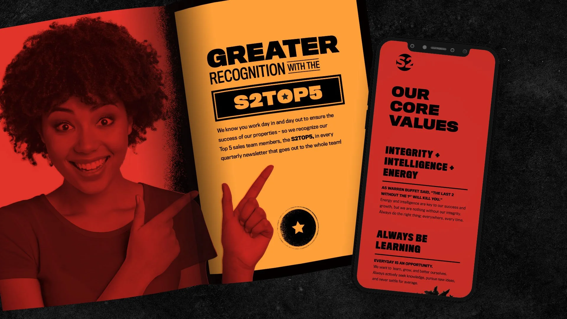 To reinforce S2’s dynamic internal culture, we helped develop S2 University, a training and rewards program designed to elevate leasing performance and celebrate top talent. Through bright color fields, bold typography, and gamified incentives—from contests to paid vacations—the campaign created excitement across digital and physical touchpoints.